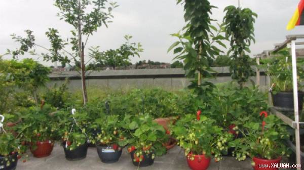 Với hơn 120m2 ngoài ban công, nhà tôi trồng được đủ các loại rau củ, quả như: bí ngô, rau mùng tơi, cải ngọt, dâu tây, húng quế, tía tô, dọc mùng...".