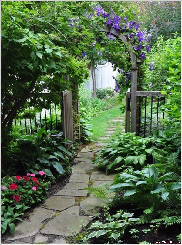 Màu xanh của những phiến đá hòa quyện cùng sắc lá trên lối đi sẽ giúp bạn tạo nên vẻ đẹp hài hòa và không kém phần lãng mạn cho lối đi dạo trong vườn. Gợi nhớ đến những câu rất “duyên” trong một sáng tác bất hủ của Xuân Diệu: